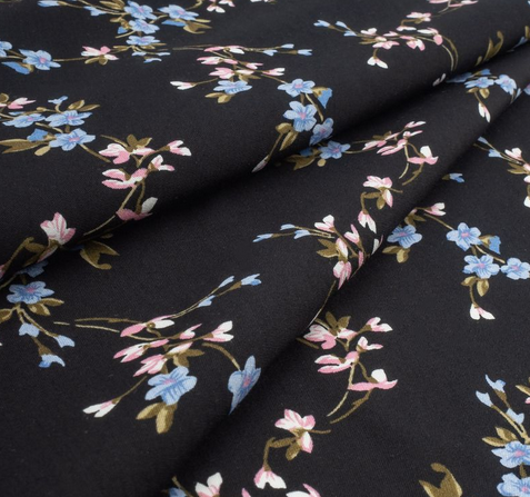 Штапель принт, черный / голубой / розовый / зеленый