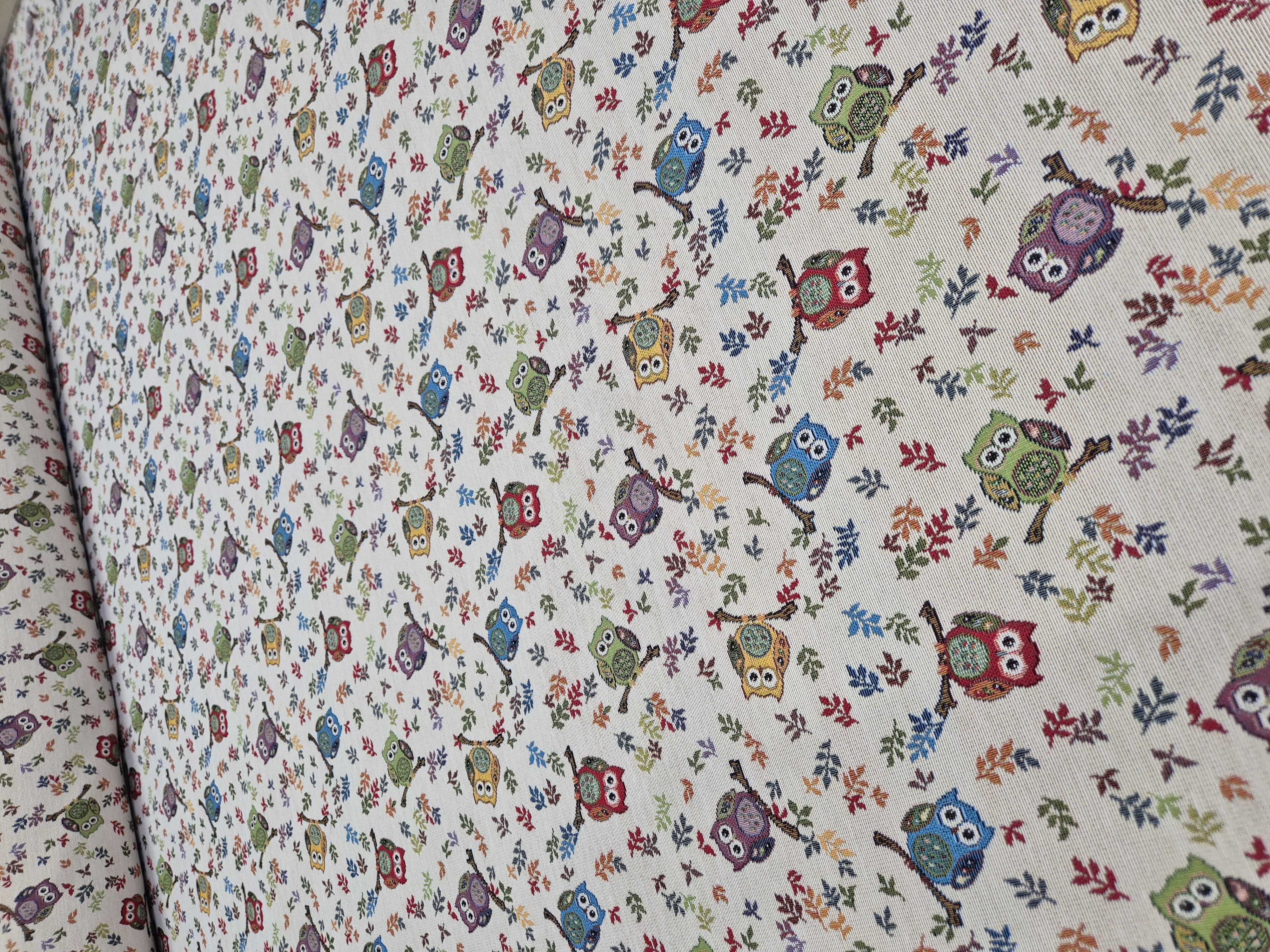 Рисунок создается переплетением нитей различных цветов и фактуры. Состав ткани: хлопок ( дающий фактуру и приятную тактильность ) и синтетические нити ( придающие износостойкость ). Плотность гобелена 410 г на кв.метр.