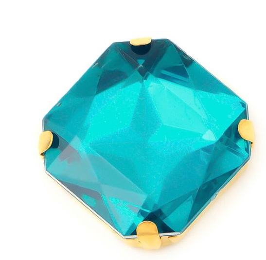 Пришивные стразы из стекла в золотистой оправе квадратной формы, с четырьмя отверстиями и плоским дном. Используются для декорирования одежды, головных уборов и предметов интерьера.