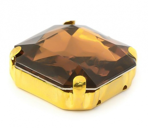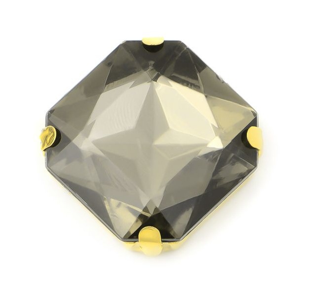 Пришивные стразы из стекла в золотистой оправе квадратной формы, с четырьмя отверстиями и плоским дном. Используются для декорирования одежды, головных уборов и предметов интерьера.
