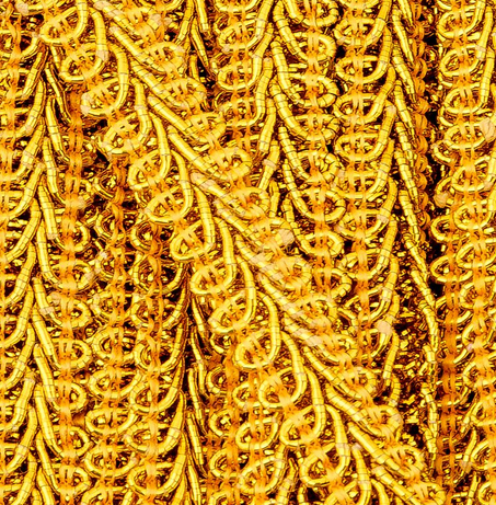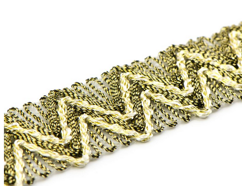 Тесьма выполнена с использованием металлизированной нити. Такая тесьма прекрасно украсит ваш наряд.