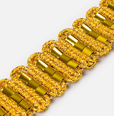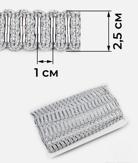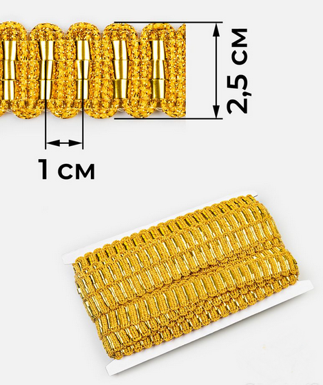 Тесьма выполнена с использованием металлизированной нити. Такая тесьма прекрасно украсит ваш наряд.