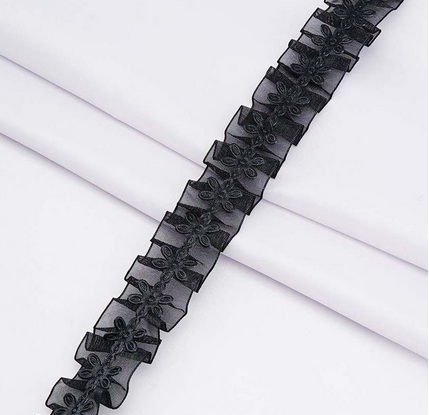 Тесьма рюш декоративная 2,5смх18,29м (черный), черный