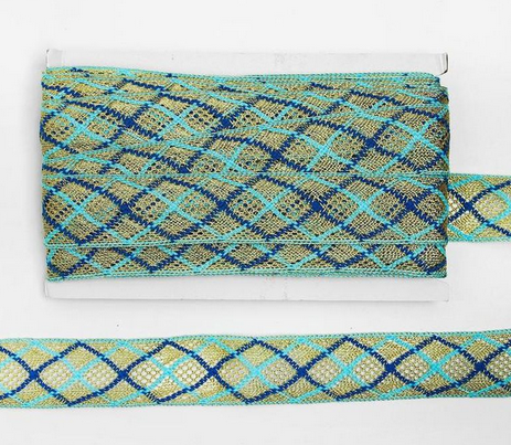 Тесьма сине-голубая на золоте, ширина 3,5 см, в упаковке 25 м