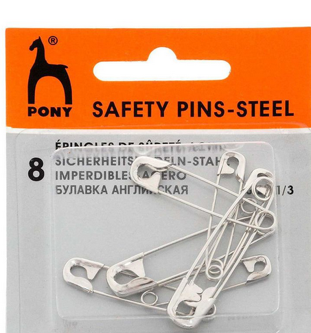 84206 Булавки английские 21 мм/44 мм, сталь, 8 шт PONY