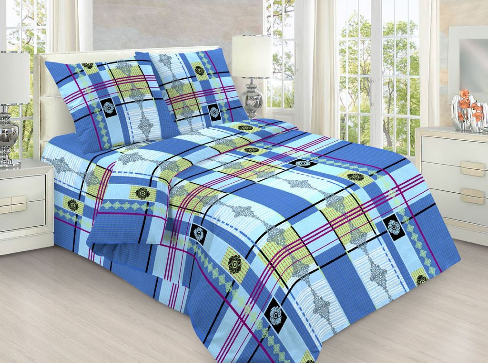 Эта бязь выполнена из 100% хлопка и обладает плотностью 120 г/м², что гарантирует долговечность и приятные тактильные ощущения. Яркий и современный дизайн в синих тонах с геометрическими узорами придаст вашему пространству свежести и оригинальности.