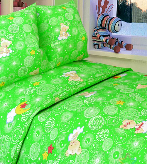 Ткань бязь 150 см ЛЮКС Мишки на облаках (бело-зеленый)