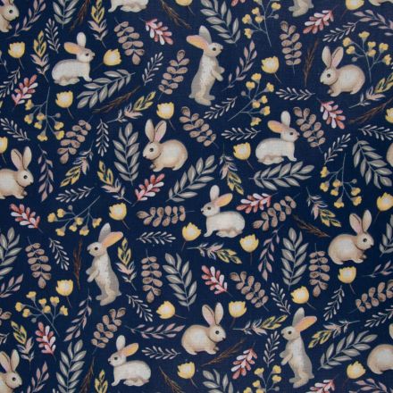 Ткань бязь 150 см ЛЮКС Любопытный зайка (темно-синий)
