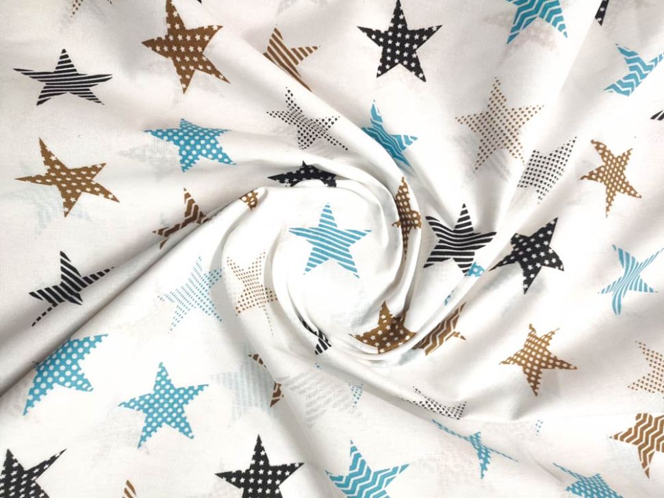 Ткань бязь 150 см ЛЮКС Звезды пэчворк (бирюзовый)