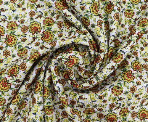 Ткань для пэчворка и шитья Хохлома на белом (золото), габардин, 50х50 (1 шт)