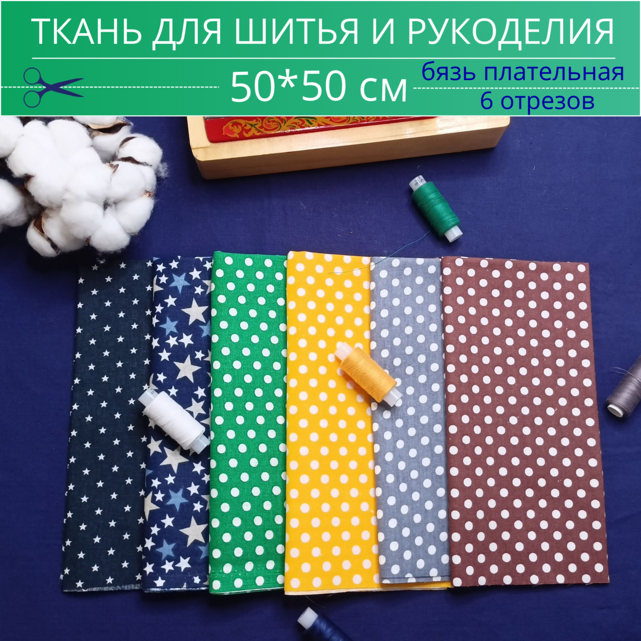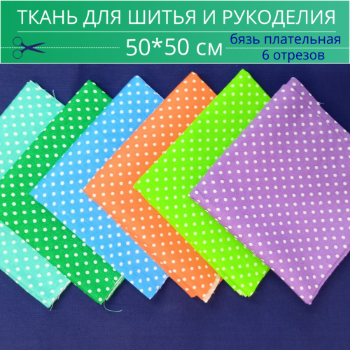 Ткань для шитья и рукоделия БЯЗЬ "Набор из 6 отрезов 50*50 см, 100% хлопок