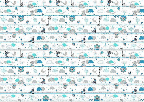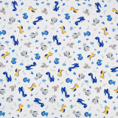Ткань ситец 95 см Дино (белый фон, синий цвет)
