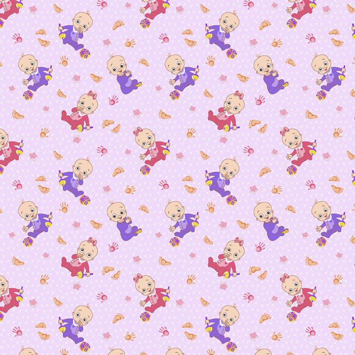 Ткань ситец 95 см "Малыши" (сиреневый фон)
