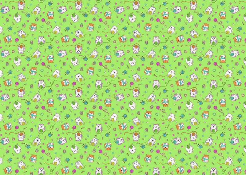Ткань ситец 95 см "Мурзики" (зеленый фон)