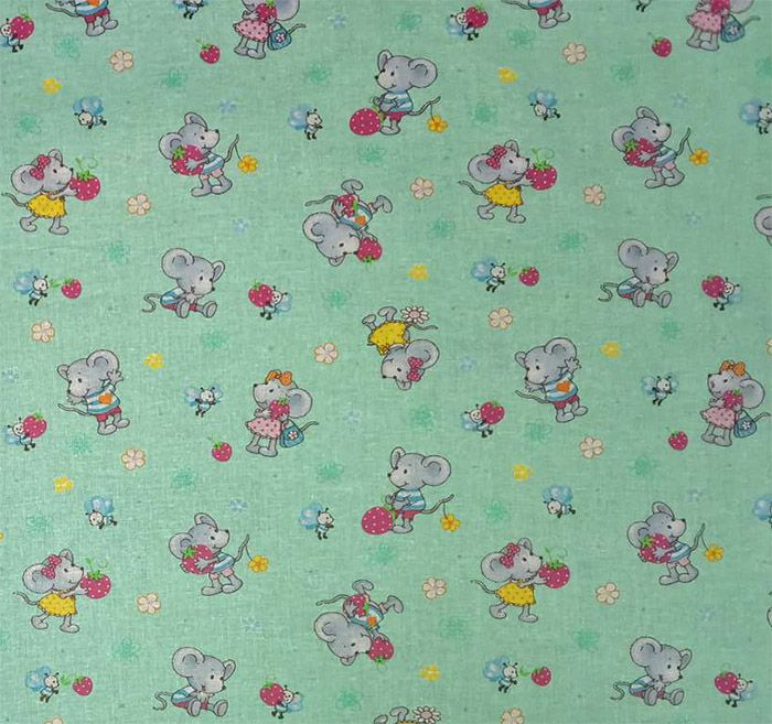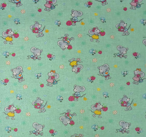 Ткань ситец 95 см "Мышки" (зеленый фон) арт. 21060-6