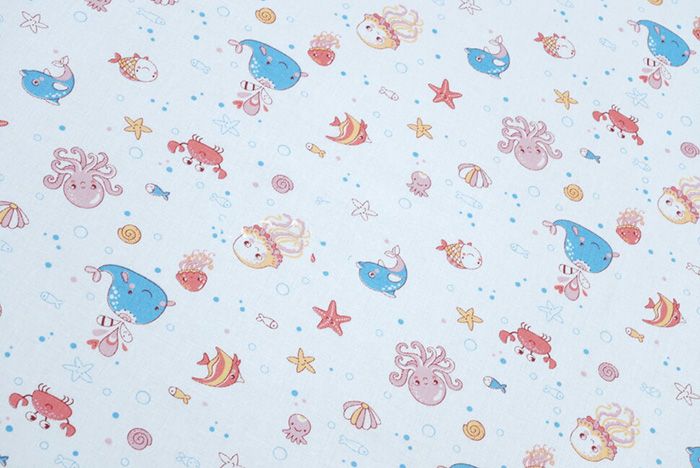 Ткань ситец 95 см "Подводный мир" (белый фон)