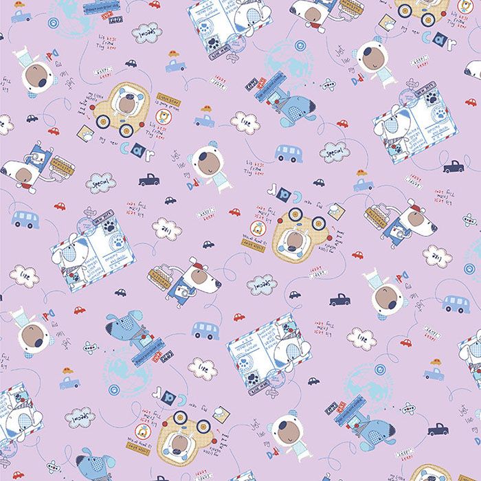 Ткань ситец 95 см "Путешествие" (сиреневый фон)