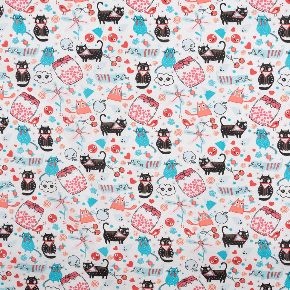 Ткань ситец 95 см Вкусняша (белый фон)