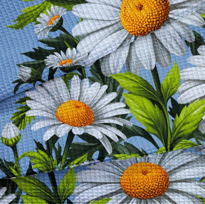Ткань вафельное полотно 50 см Ромашки (голубой) арт. 29440-1
