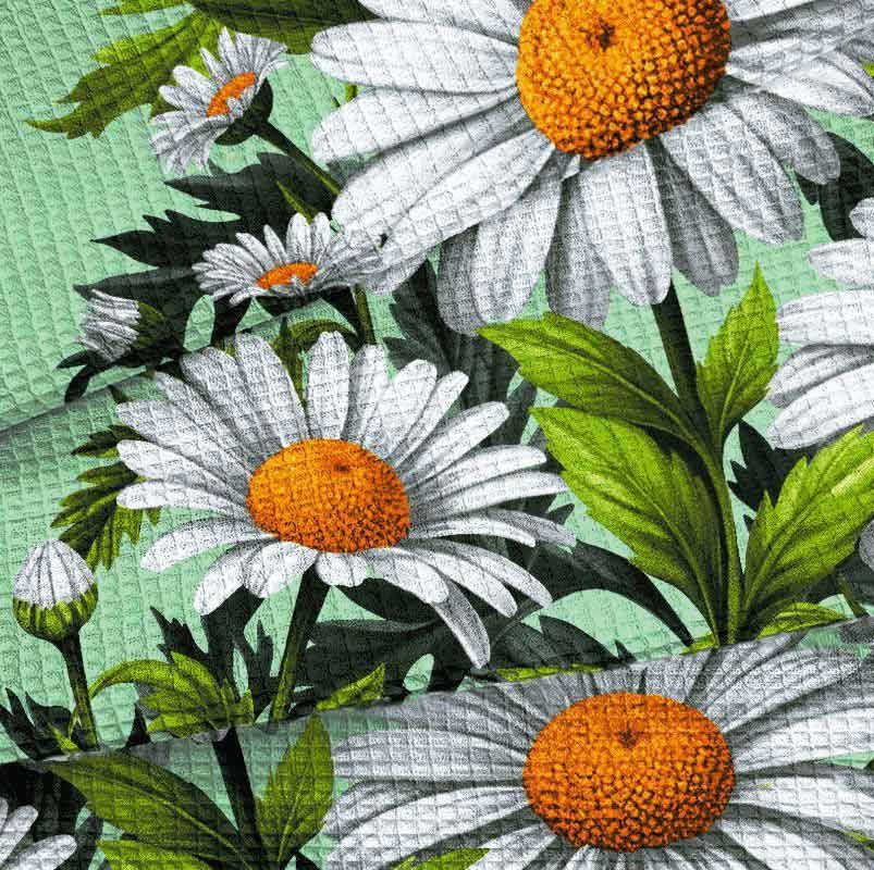 Ткань вафельное полотно 50 см Ромашки (зеленый) арт. 29440-2