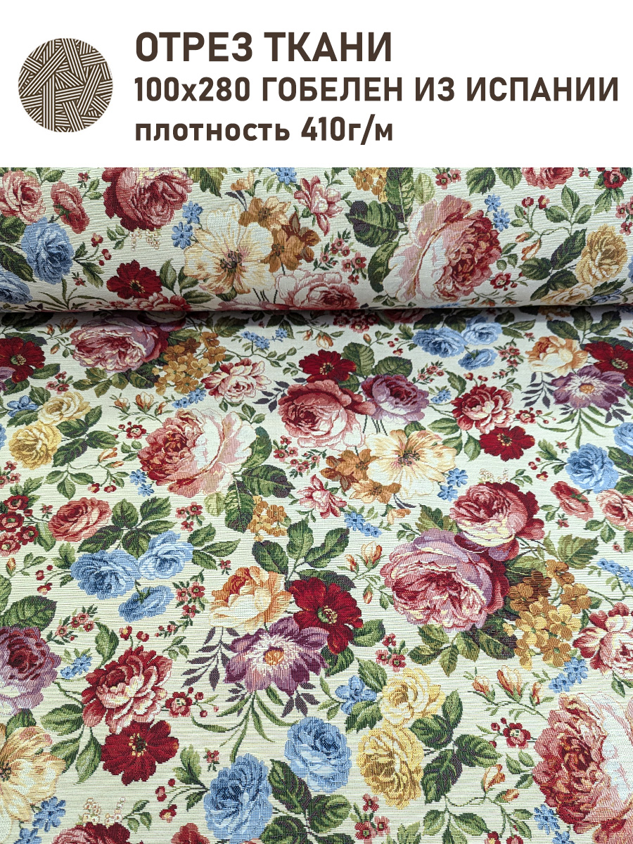 Рисунок создается переплетением нитей различных цветов и фактуры. Состав ткани: хлопок ( дающий фактуру и приятную тактильность ) и синтетические нити ( придающие износостойкость ). Плотность гобелена 410 г на кв.метр.