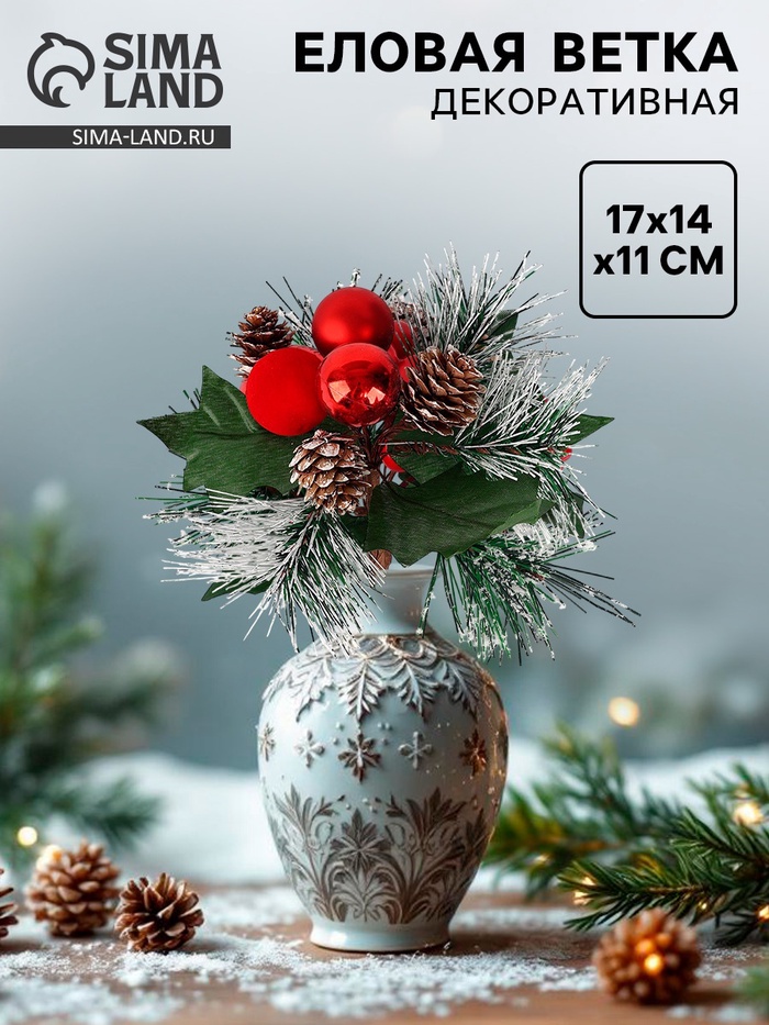 Новогодний декор «Веточка зимой» — это объёмное и стильное украшение для вашего дома. Веточки ели удобно хранить благодаря легкому весу. Их можно использовать для украшения дверей, окон, столов или подарочных упаковок на Новый год или Рождество.