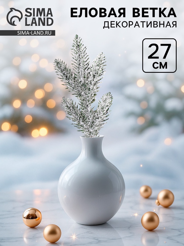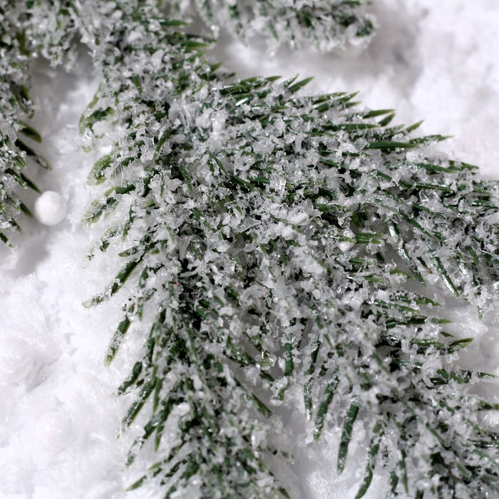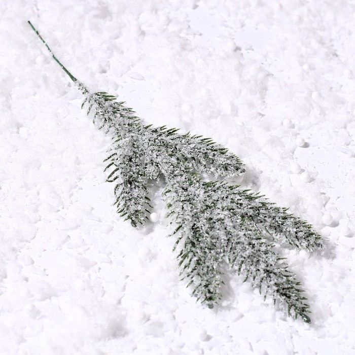 Декоративная веточка ели со снегом — это стильное украшение для новогодних и праздничных композиций. Размер веточки позволяет использовать их как в интерьерных декорах, так и для украшения подарков.