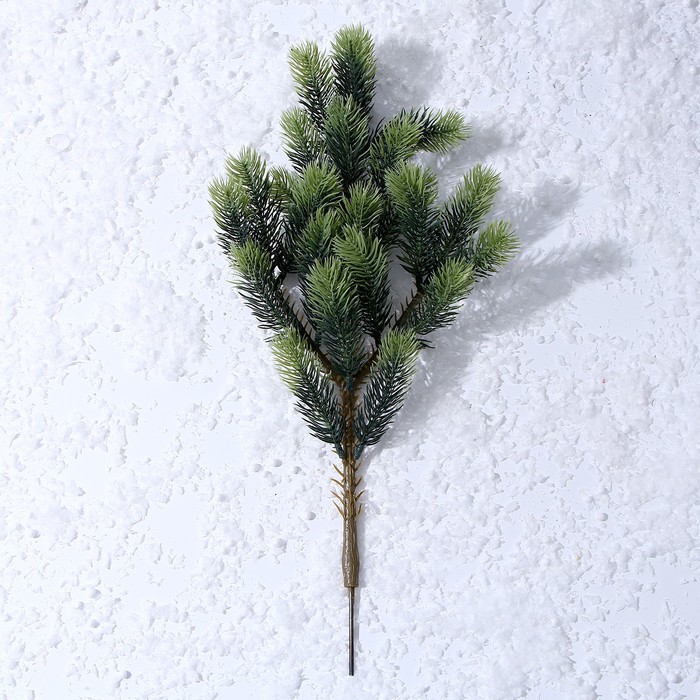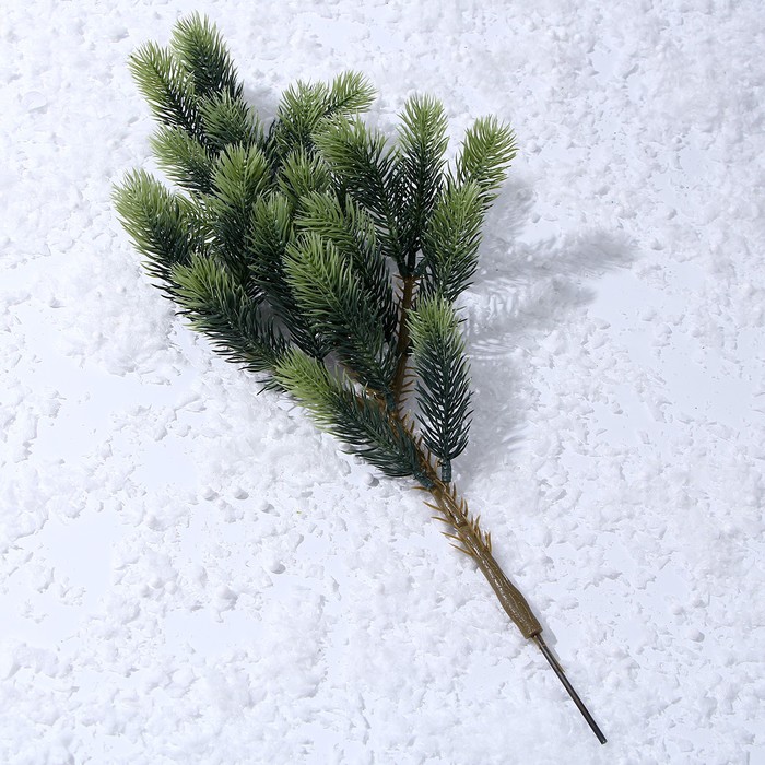 Декоративная веточка ели «Новогодняя» — это стильное украшение для новогодних и праздничных композиций. Размер веточки позволяет использовать их как в интерьерных декорах, так и для украшения подарков.
