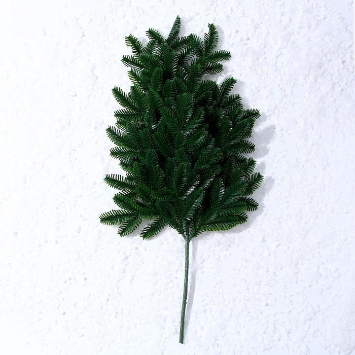 Декоративная пышная веточка ели — это стильное украшение для новогодних и праздничных композиций. Размер веточки позволяет использовать их как в интерьерных декорах, так и для украшения подарков.