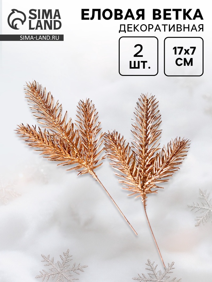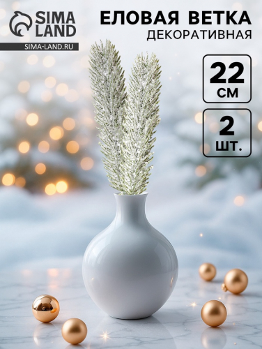 Ветка декоративная новогодняя, набор 2 шт., размер 1 шт. — 17×7 см