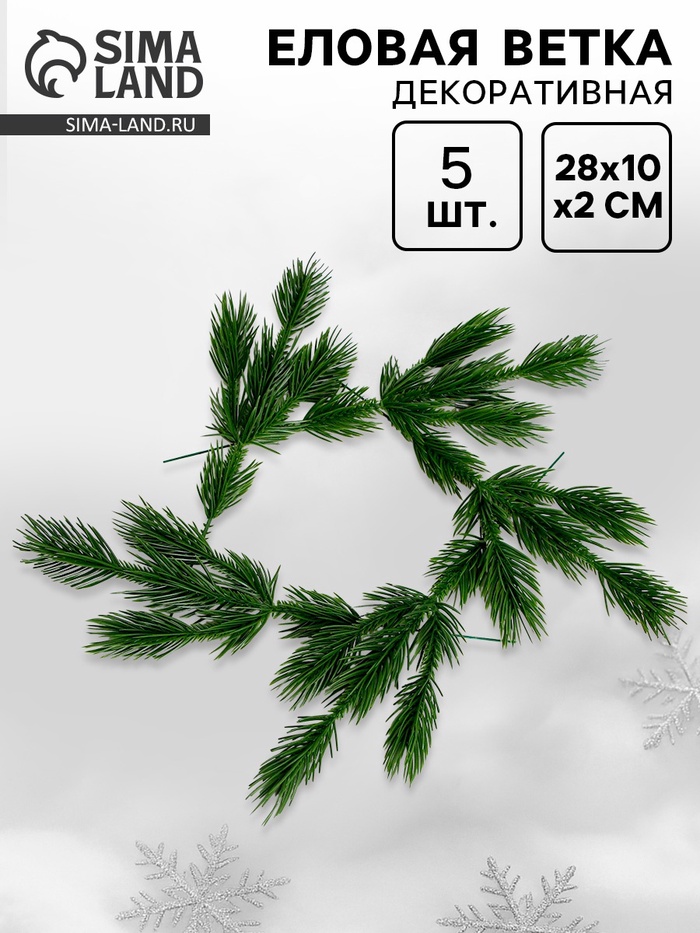 Ветка декоративная новогодняя, набор 5 шт., размер 1 шт. — 28×10×3 см