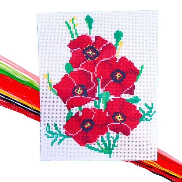 Вышивка крестиком Маки, 25х20 см