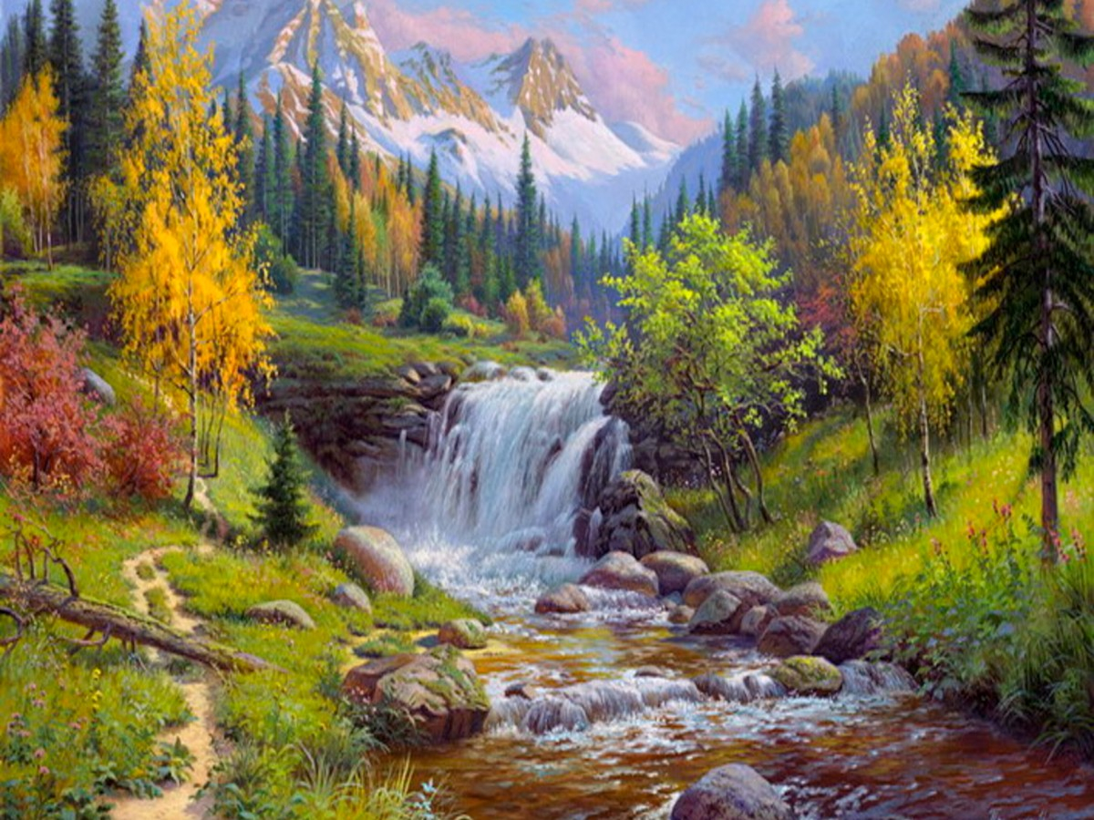 Вышивка крестиком 40х50см, Водопад