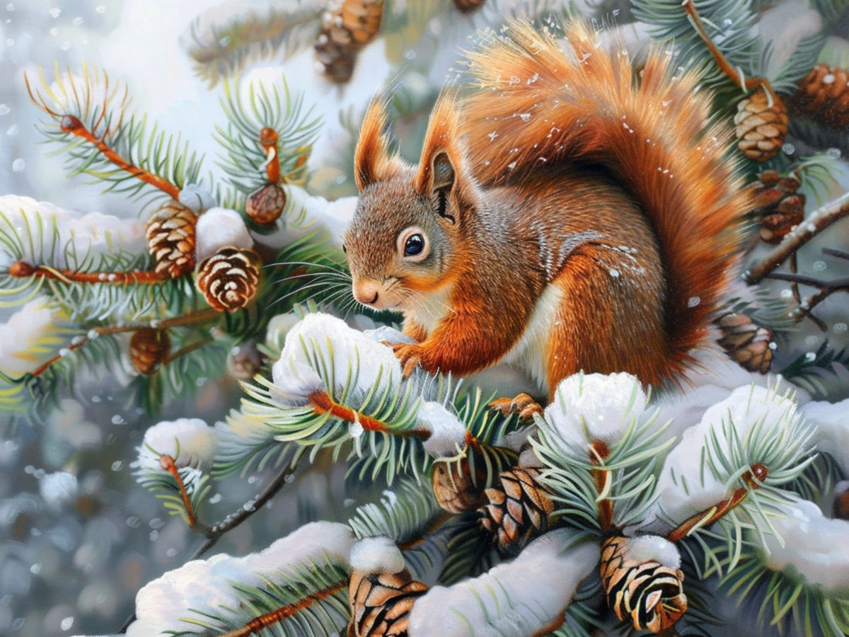Вышивка крестиком 40х50см, Белка на елке