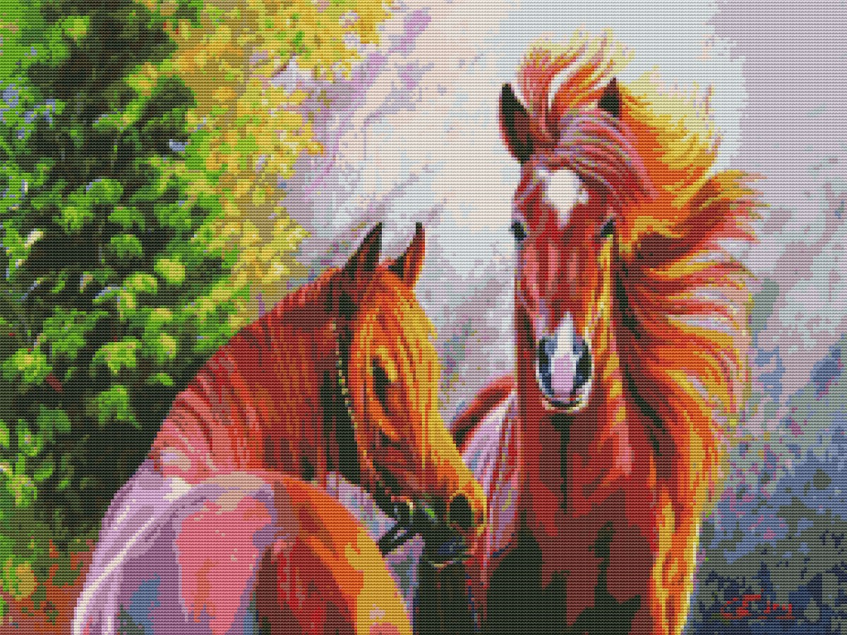 Вышивка крестиком 40х50см, Две лошади