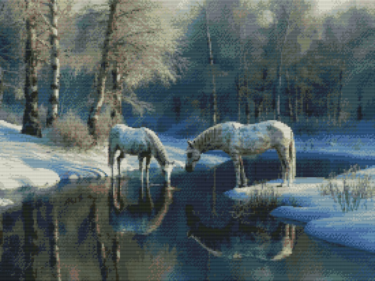 Вышивка крестиком 40х50см, Лошади на реке
