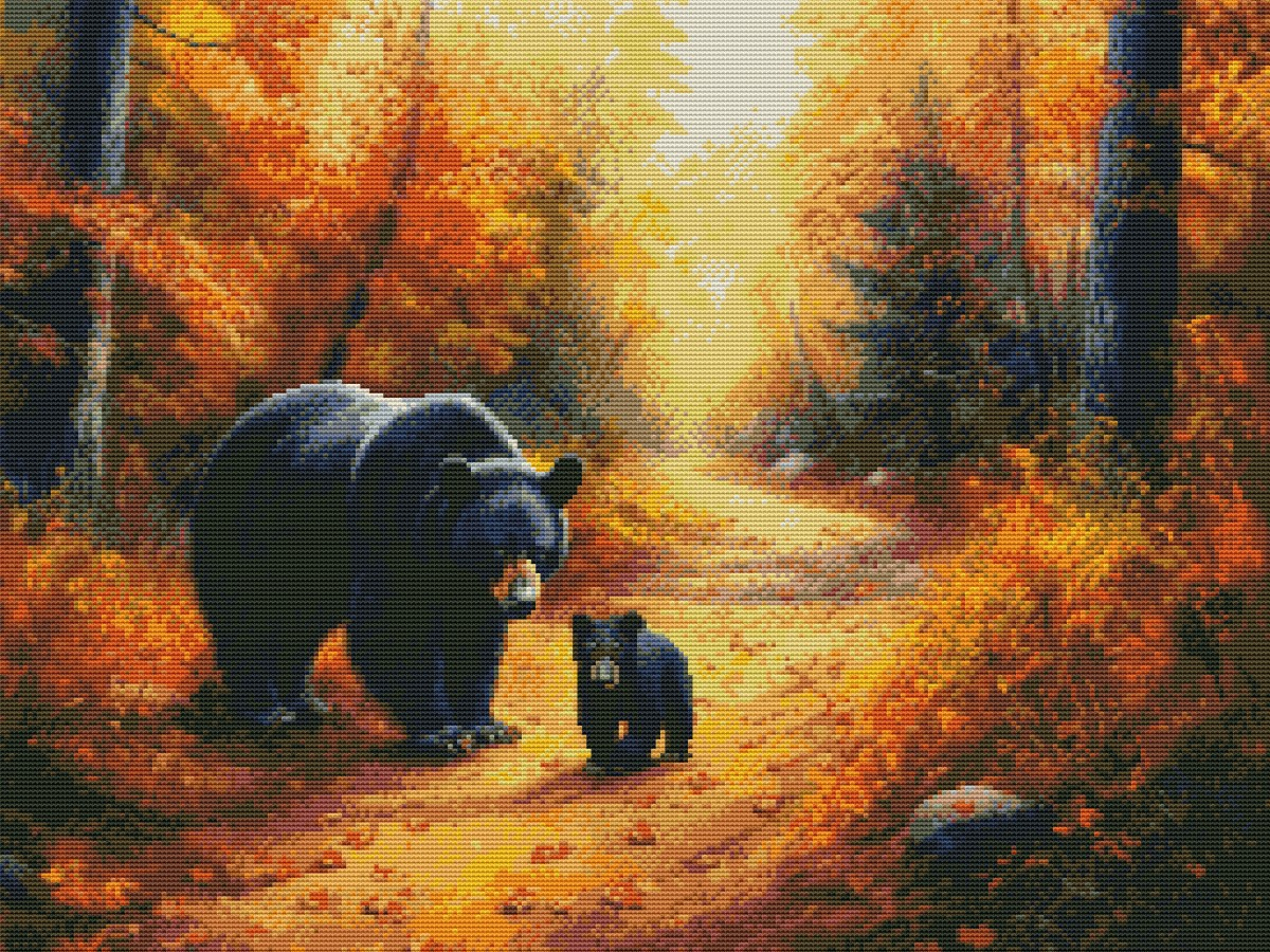 Вышивка крестиком 40х50см, Медведи и осень