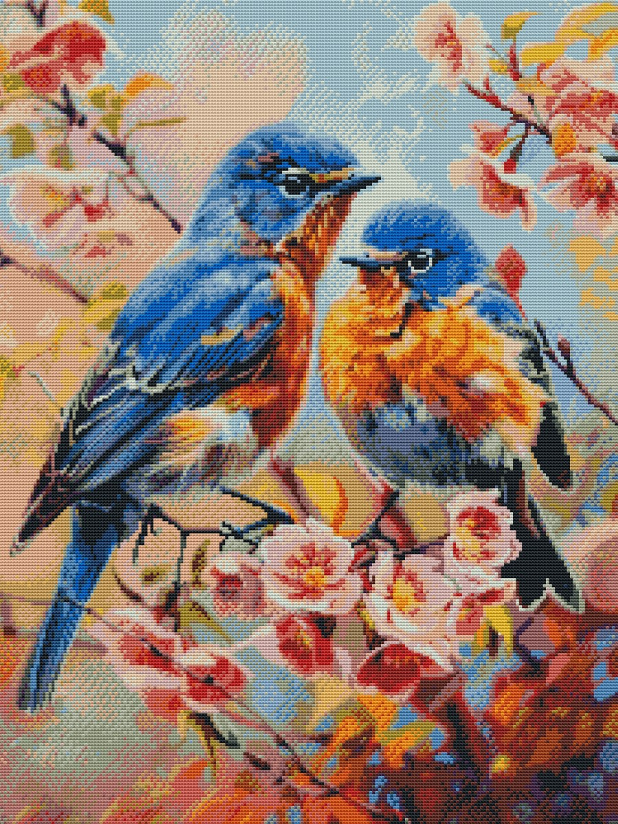 Вышивка крестиком 40х50см, Пара птиц