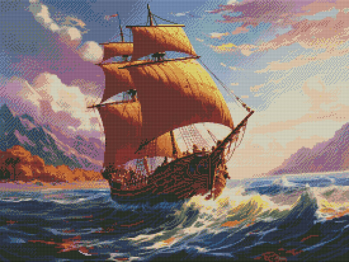 Вышивка крестиком 40х50см, Парусник