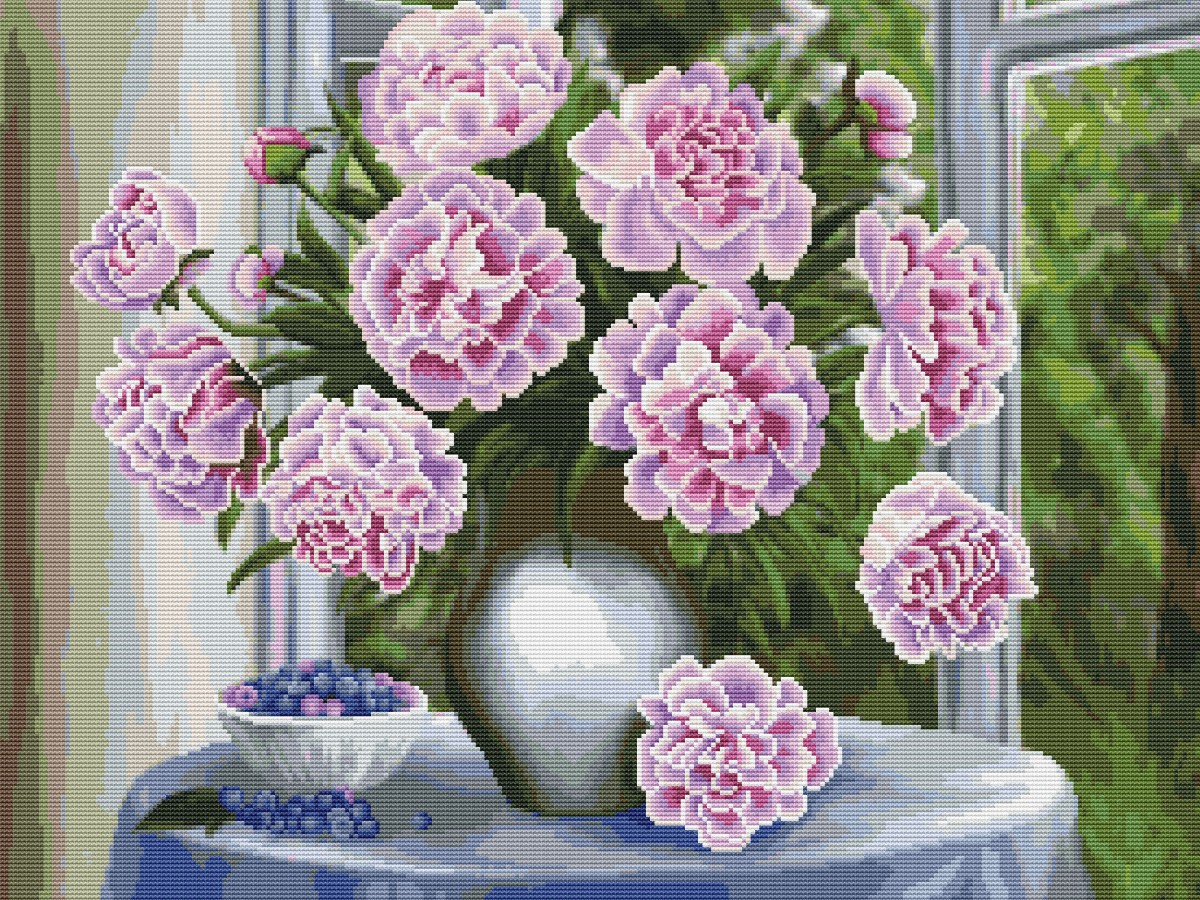 Вышивка крестиком 40х50см, Пионы