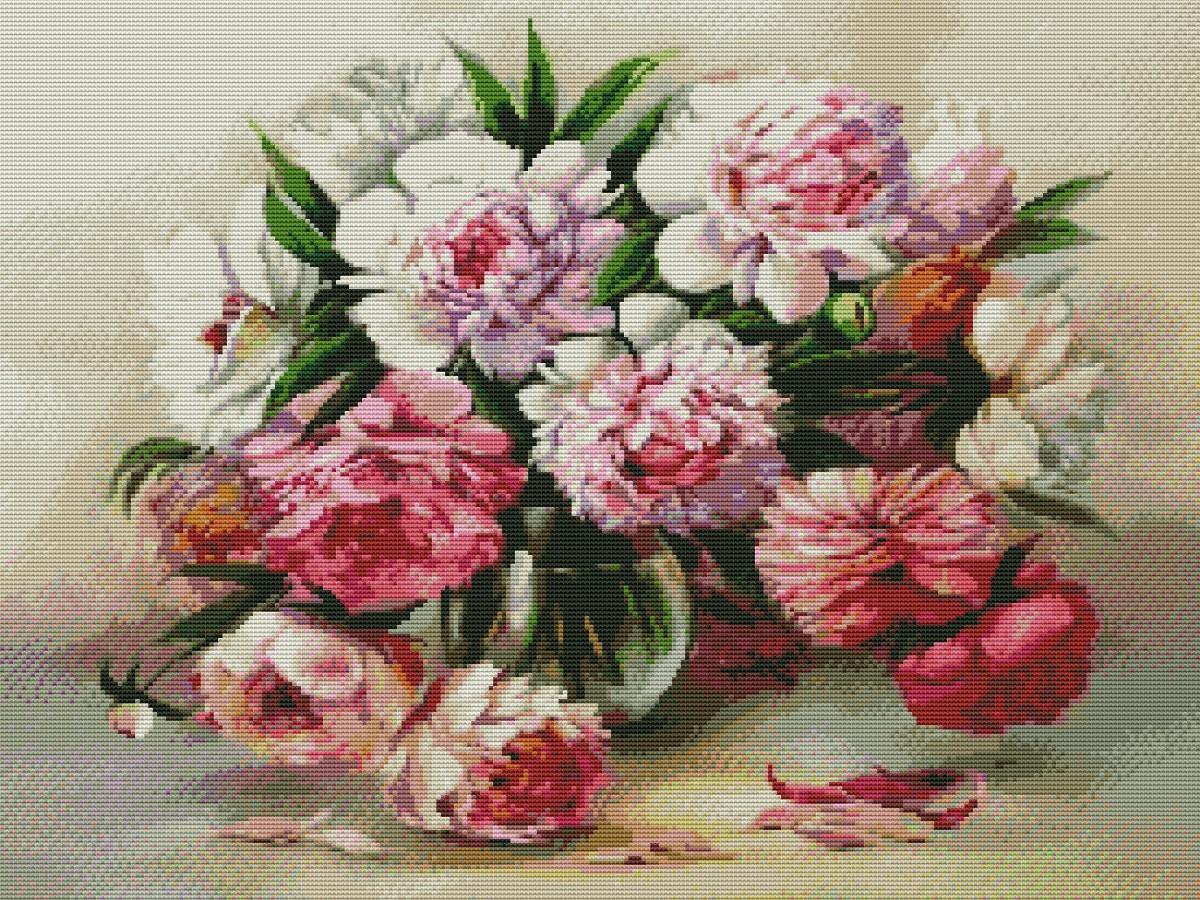 Вышивка крестиком 40х50см, Пионы