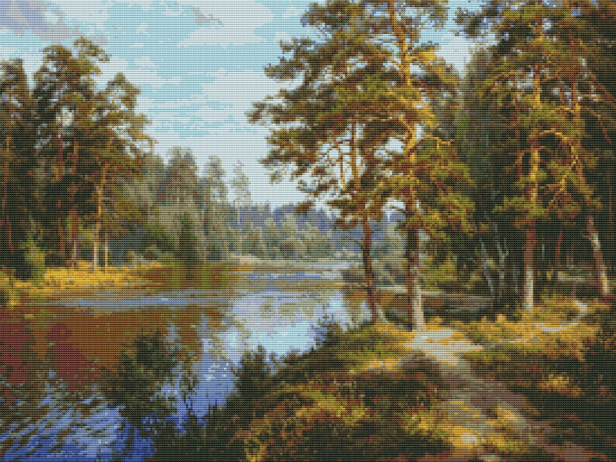 Вышивка крестиком 40х50см, Река и лес