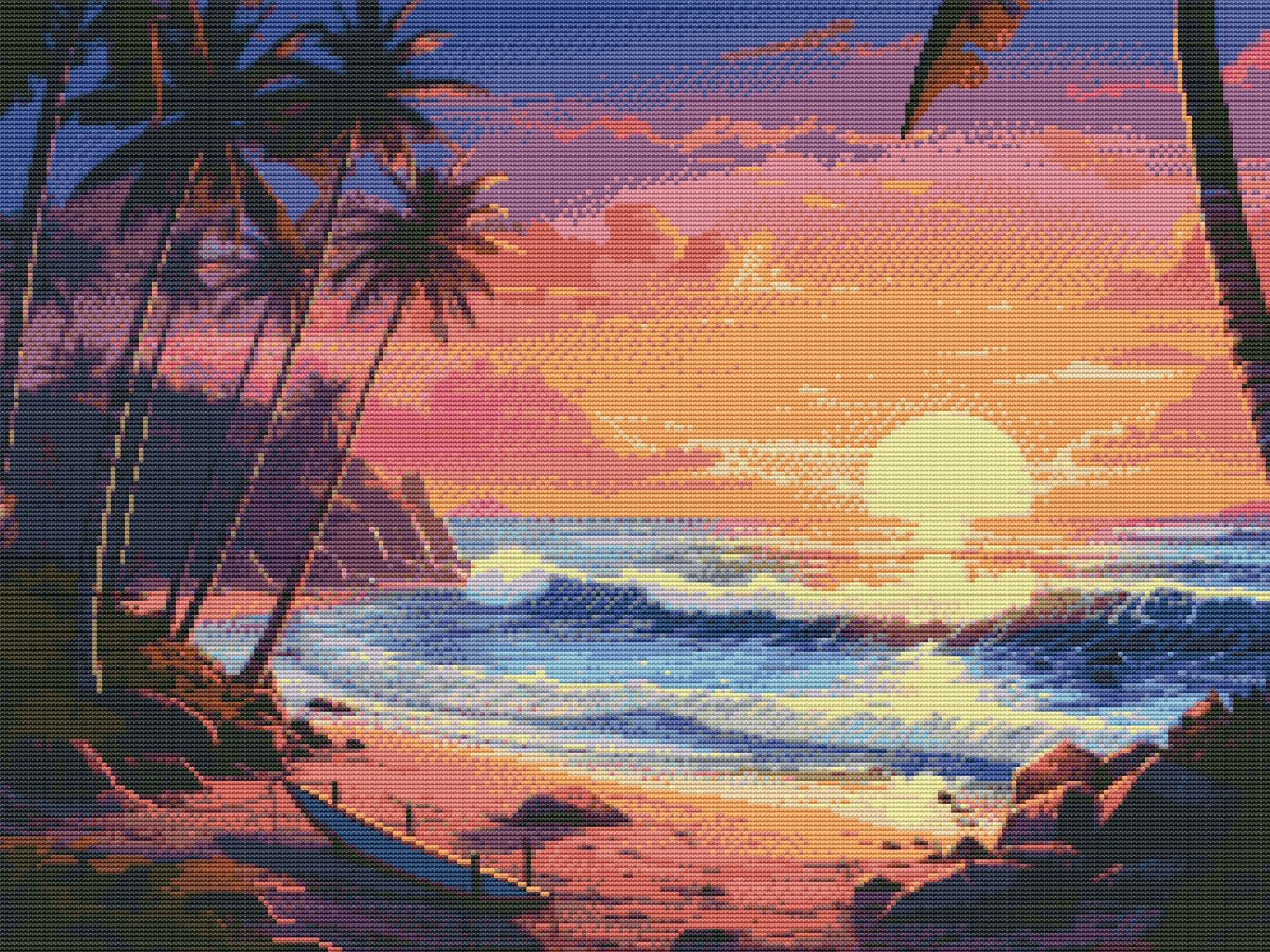 Вышивка крестиком 40х50см, Закат на берегу