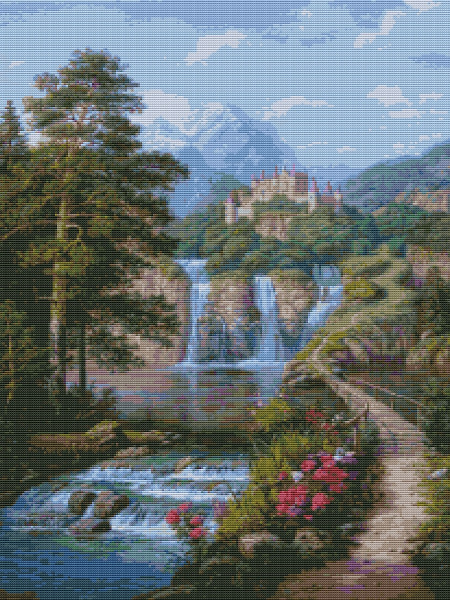 Вышивка крестиком 40х50см, Замок у водопада