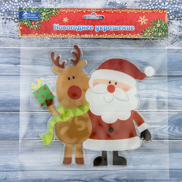 Наклейка на стекло «Дед Мороз с оленем», 16.5×16.5 см