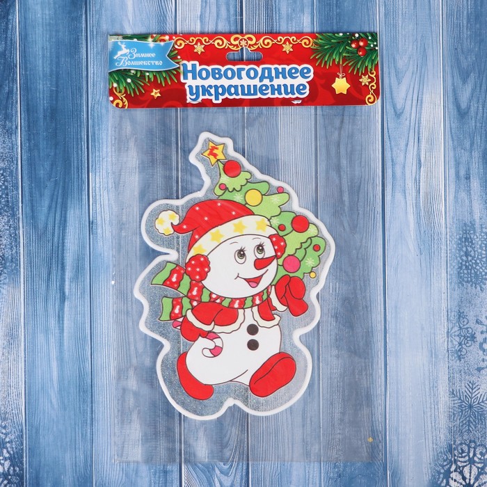 Наклейка на стекло «Снеговик с ёлкой», 10×14 см