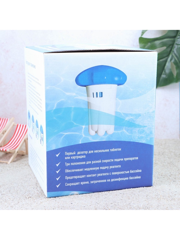 Плавающий пластиковый дозатор для подачи реагентов в воду бассейна.