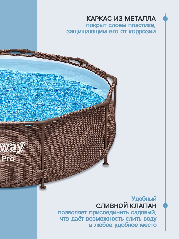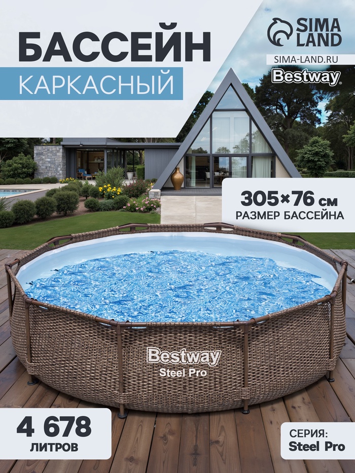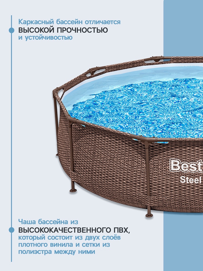 Бассейн каркасный Steel Pro, 305×76 см, круглый, цвет ротанг, 561JE Bestway