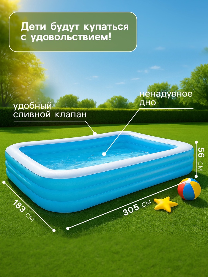Бассейн надувной, 305×183×56 см, от 6 лет, 54009 Bestway