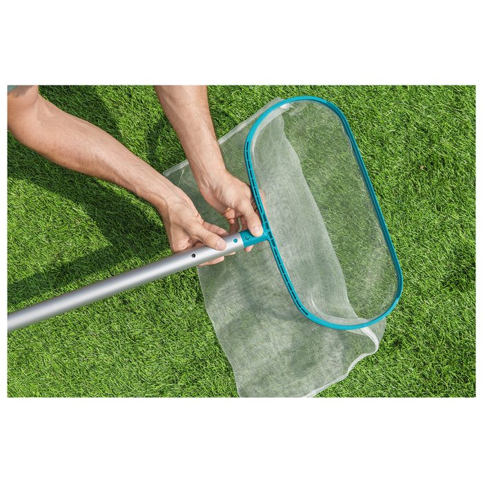 Насадка-сачок — это необходимый инвентарь, который должен быть в арсенале каждого обладателя каркасного или надувного бассейна. С ним вы в два счёта расправитесь с такими загрязнениями на поверхности воды, как листва и насекомые. Для использования наденьте насадку на ручку и начните очищать бассейн.